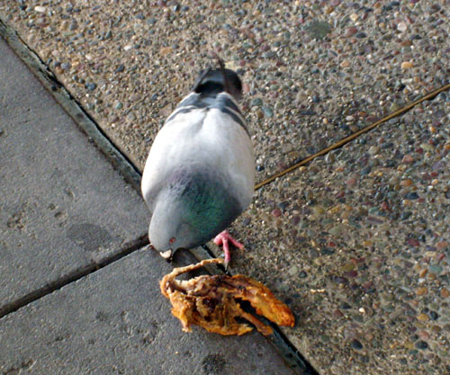 Ok – I know this is NYC where all things strange live & flourish, but it really does give me pause seeing a pigeon eating a chicken. Shouldn’t that be 100% against the overall Pigeon moral code or something? #thingsthatdisturb